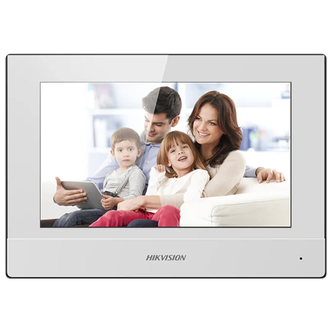 The DS-KH6320-WTE1 is an indoor 7” touchscreen monitor that controls access to doors and gates. The monitor allows you to receive calls, open doors/gates and store messages. Designed to be used with the Hikvision modular IP intercom systems.